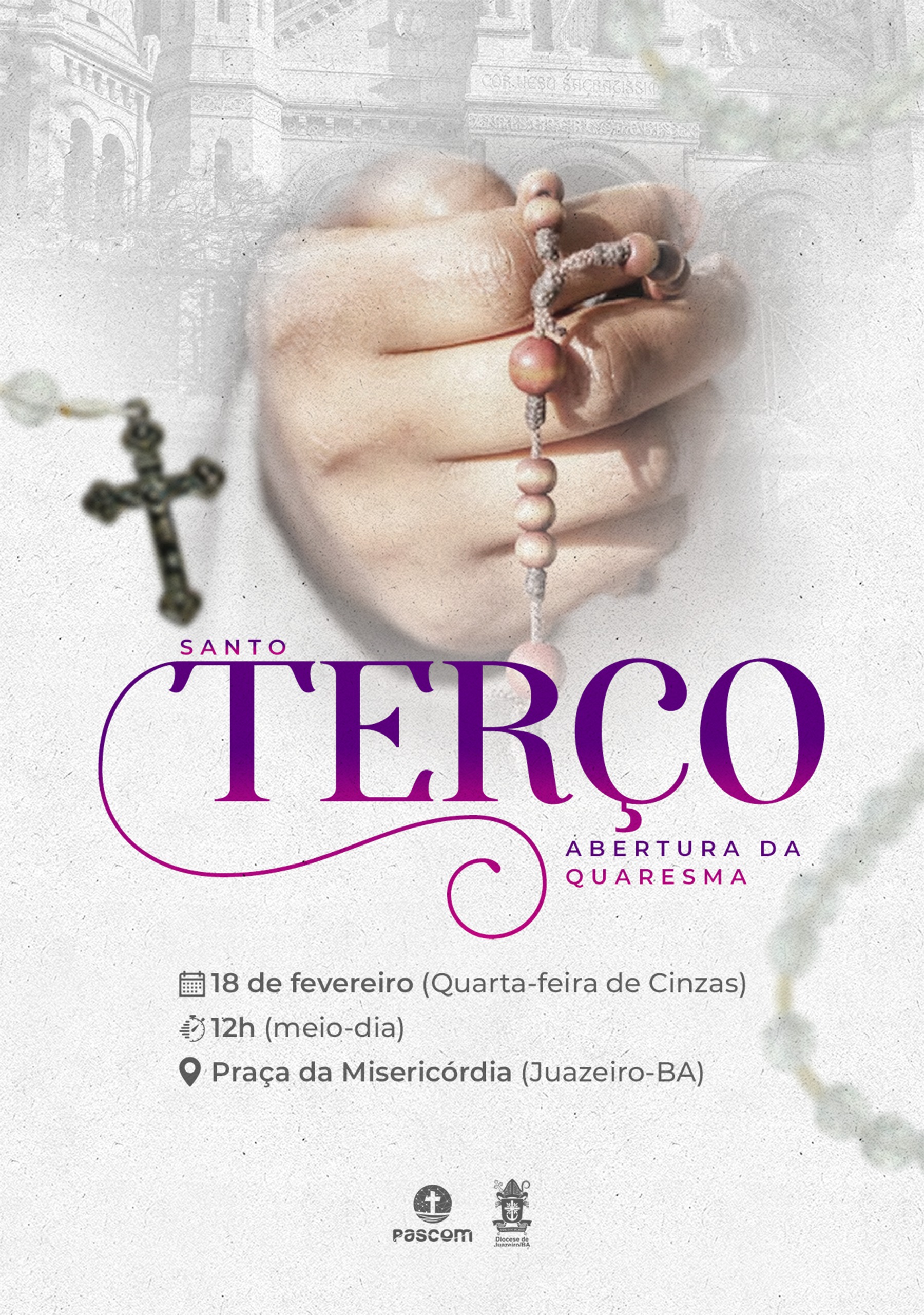 A Diocese de Juazeiro realizará a abertura da Quaresma na Quarta-Feira de Cinzas, dia 18 de fevereiro, e convoca fiéis para rezar o Terço ao meio-dia na Praça da Misericórdia, centro da cidade.m Juazeiro (BA).