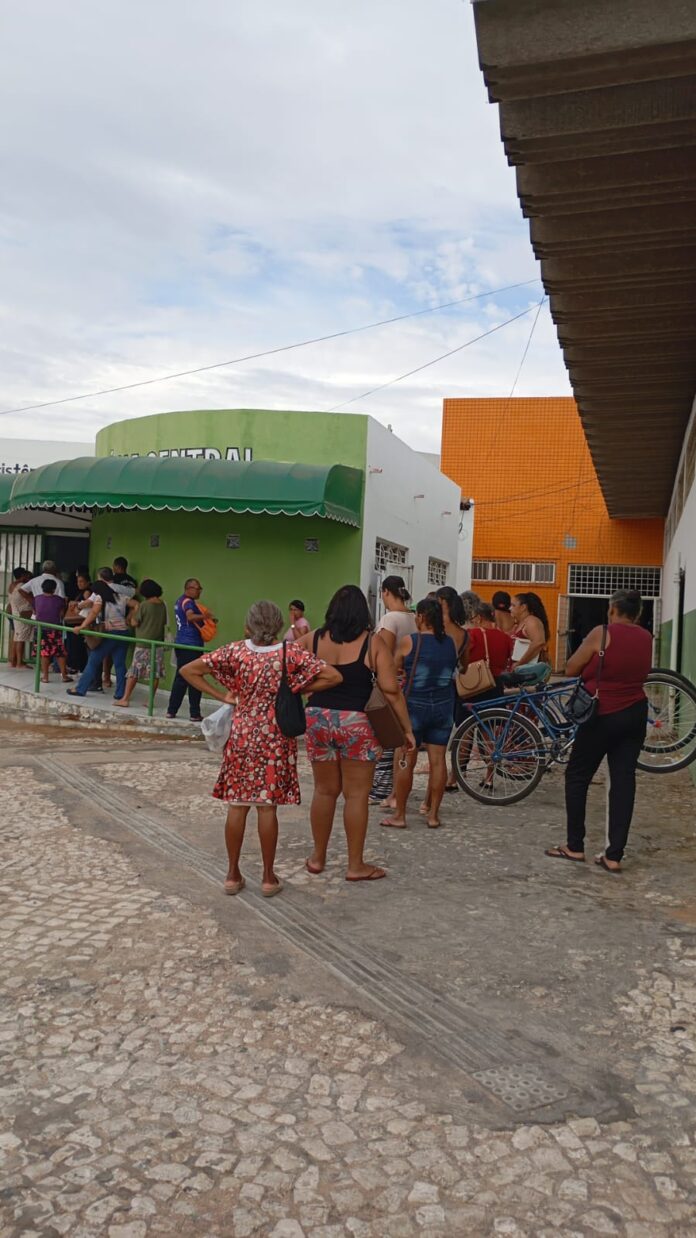 Imagens registradas na manhã desta quinta-feira (19) mostram filas do lado de fora da unidade, com pessoas em pé e expostas ao sol forte.