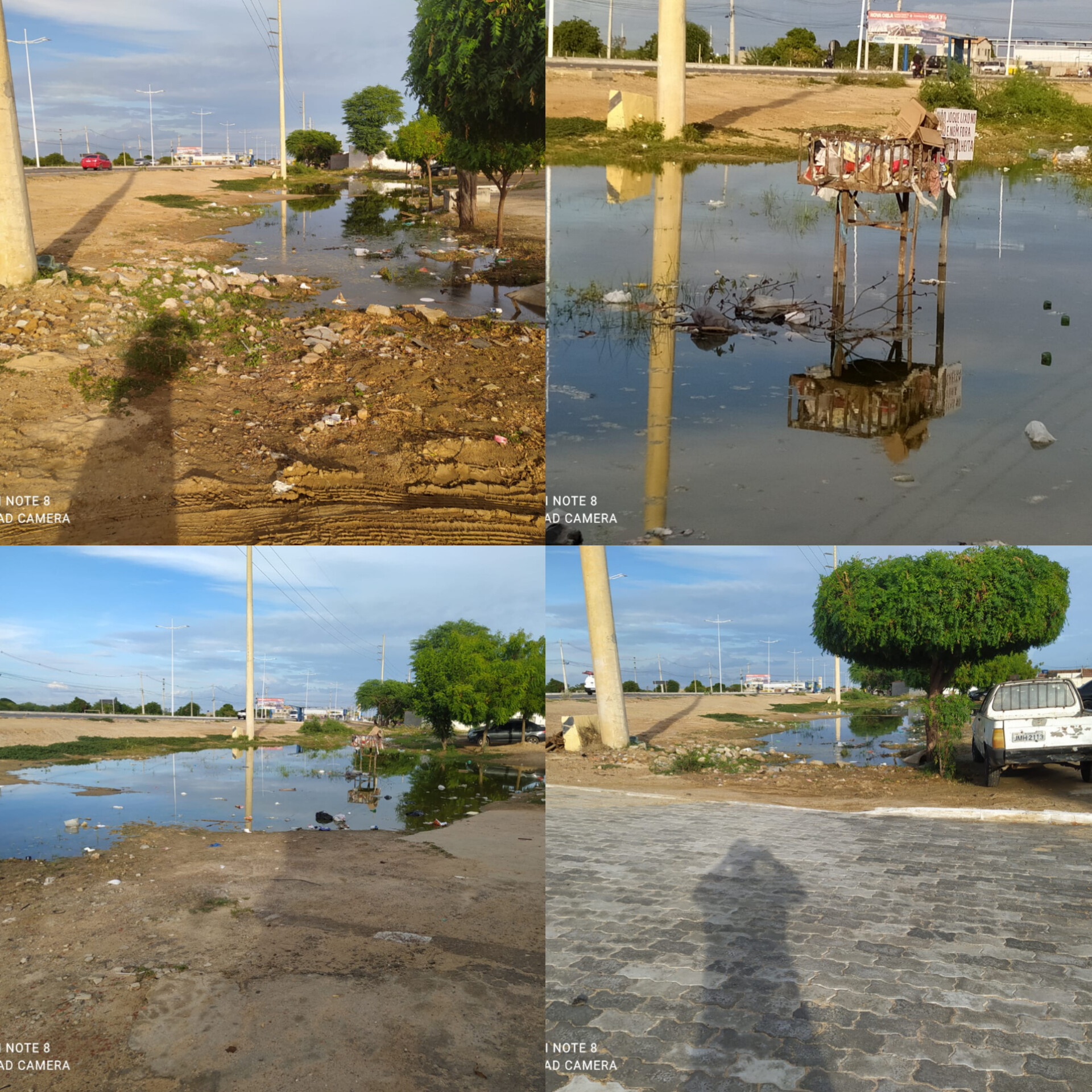 “Quando chove, fica essa água empoçada prejudicando todo mundo. Lá tem uma lixeira que ficou dentro da água e está cheia de lixo. O carro da coleta nem conseguiu recolher por conta da lagoa que ficou. Isso aqui virou a pior imundice”, desabafa.