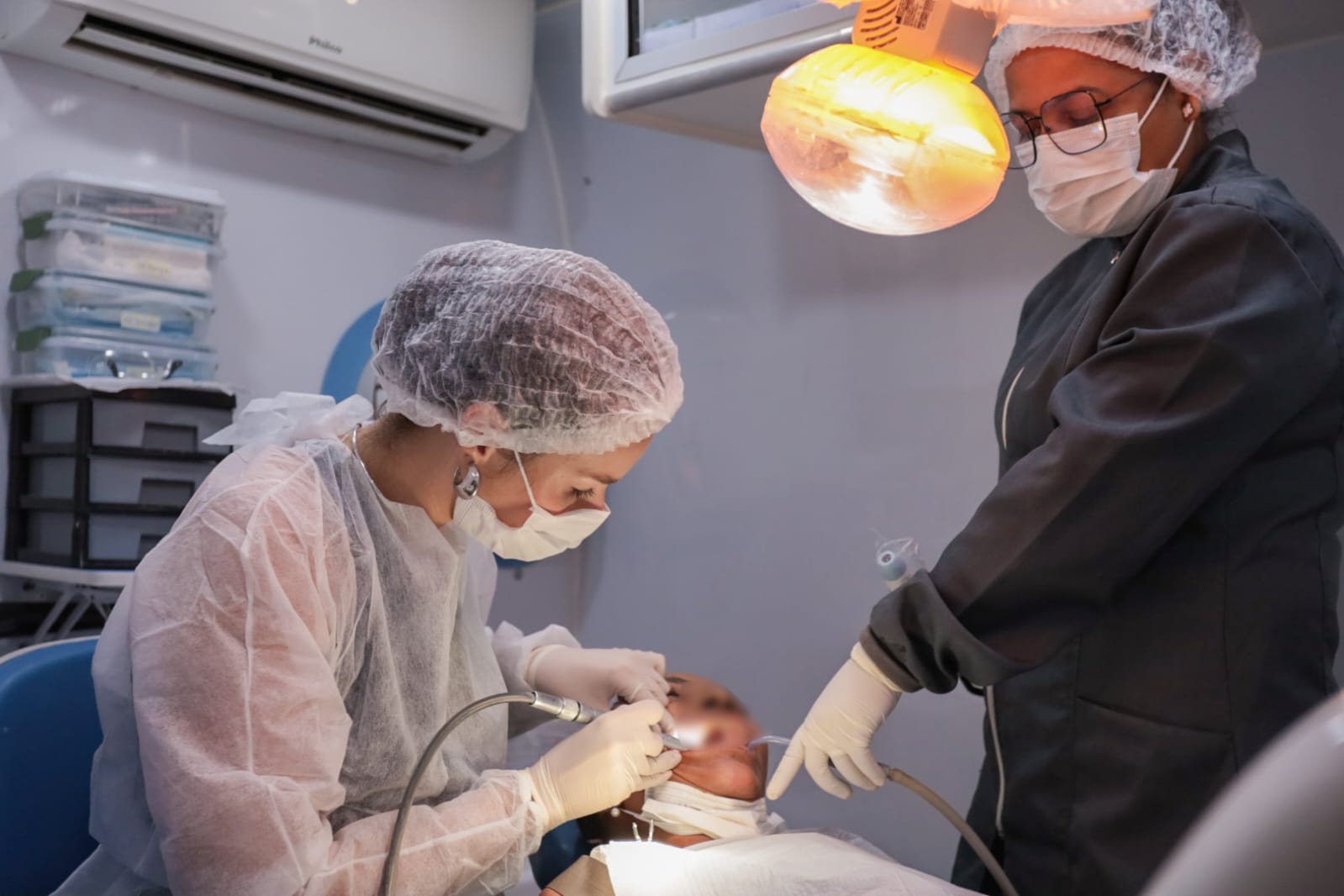 Moradora de Pinhões há 13 anos, Vaniele Pereira elogiou a estrutura e a organização do evento. Ela foi com a família em busca de atendimento odontológico e aproveitou para conhecer serviços de outras áreas. “Tá muito bom. A gente passa, pergunta, conhece. Facilita muito”, afirmou, enquanto aguardava o atendimento.