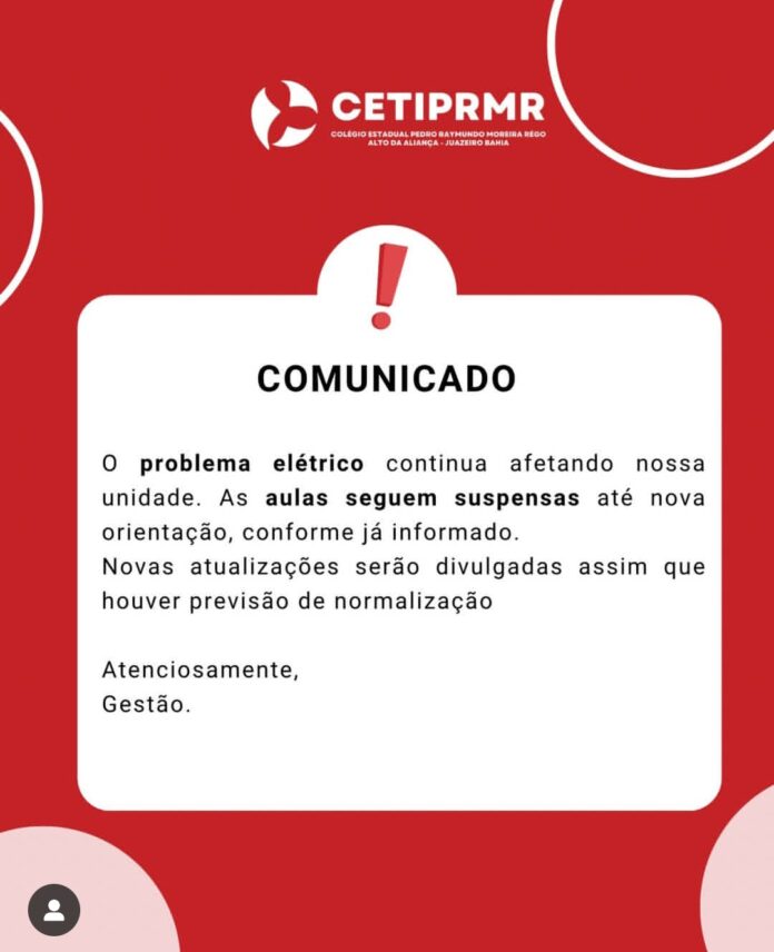 Estudantes do Colégio Estadual Pedro Raymundo Moreira Rego, localizado no bairro Alto da Aliança, em Juazeiro, na região Norte da Bahia, entraram em contato com o Portal Preto no Branco para relatar que estão há cerca de uma semana sem aulas. Segundo os relatos, a justificativa apresentada diariamente é a suposta falta de energia elétrica na unidade escolar.