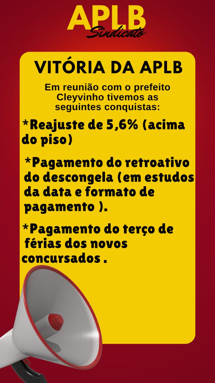 O professor Antônio Carlos dos Santos, que faz parte da corpo jurídico da APLB Sindicato e também participou da reunião assegurou que “a reunião trouxe, além do pagamento do reajuste de 5,6%, o descongela – reconhecimento dos dois anos congelado pelo governo federal anterior e que o atual tornou sem efeito. O prefeito Cleivinho ainda garantiu que vai pagar o quinquênio retroativo aos últimos anos e isso foi uma grande vitória da APLB”.