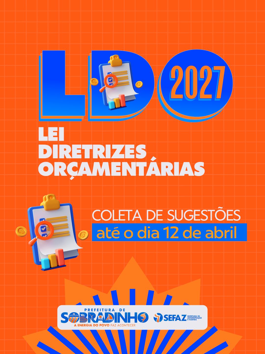A Prefeitura de Sobradinho, através da Secretaria de Administração e Fazenda, iniciou a coleta eletrônica de sugestões da população para a elaboração da Lei de Diretrizes Orçamentárias (LDO) de 2027. A iniciativa busca ampliar a participação popular na definição das prioridades que irão orientar o planejamento financeiro do município para o próximo ano.