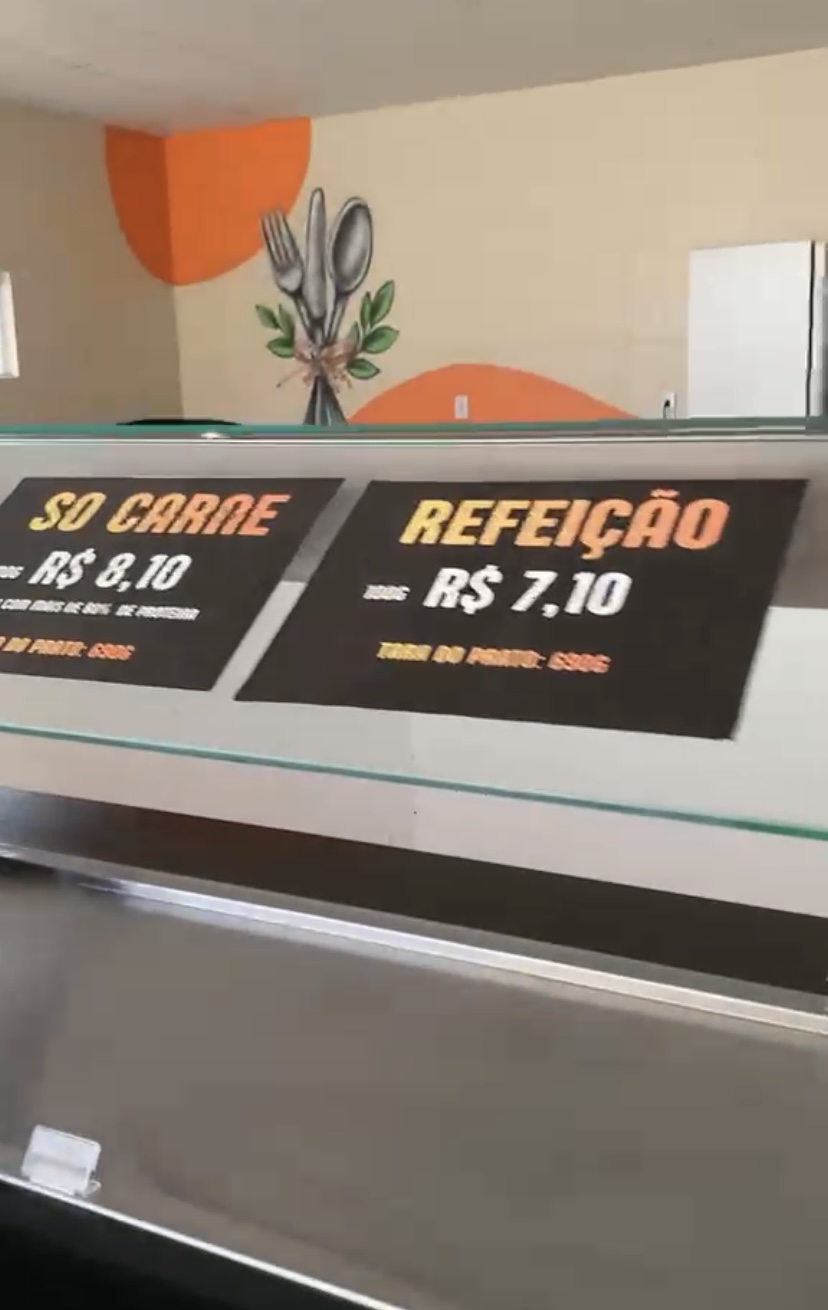 Lucas também destacou que os valores exibidos no local são apresentados com base em porções de 100 gramas, o que pode dificultar a percepção do custo final da refeição.