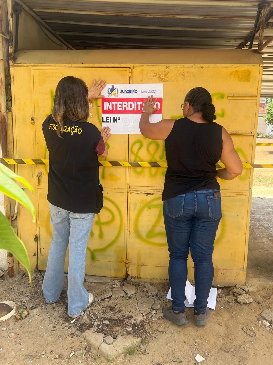 Após reclamação de uma moradora da Avenida São Paulo II, bairro São Geraldo, em Juazeiro, sobre transtornos causados por um ponto comercial instalado irregularmente em um terreno público ao lado de sua residência, uma equipe da Secretaria de Ordem Pública e Habitação foi até o local averiguar a denúncia.