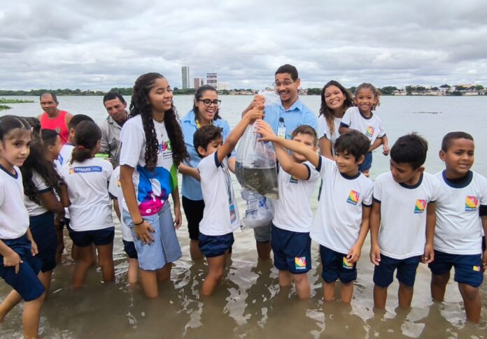 Os alevinos das espécies piau e curimatã são oriundos da 3ª Superintendência da Companhia de Desenvolvimento dos Vales do São Francisco e do Parnaíba (Codevasf). Após o equilíbrio térmico, técnicos e estudantes fizeram a liberação de alevinos. Darlan Rodrigues dos Santos, 9 anos, da Escola Municipal Ricardina Ferreira da Silva, do N-11, estava ansioso para poder participar da ação. “Estou ansioso e feliz para chegar a minha vez. Nunca tinha visto o rio de perto assim”, disse o estudante.
