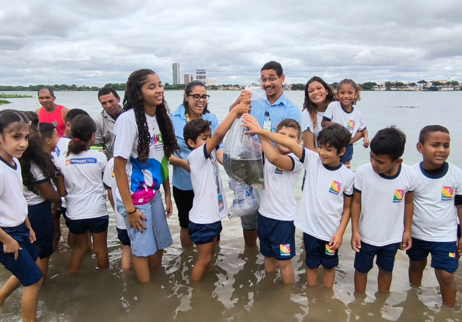 Representantes da Agrovale participaram na manhã desta quinta-feira (26) de uma ação de soltura de alevinos realizada em comemoração ao Dia Mundial da Água, celebrado em 22 de março. A ação, organizada pela Agência Municipal do Meio Ambiente (AMMA) da Prefeitura de Petrolina, liberou 50 mil alevinos no Velho Chico, com a participação de cerca de 200 alunos de escolas municipais.
