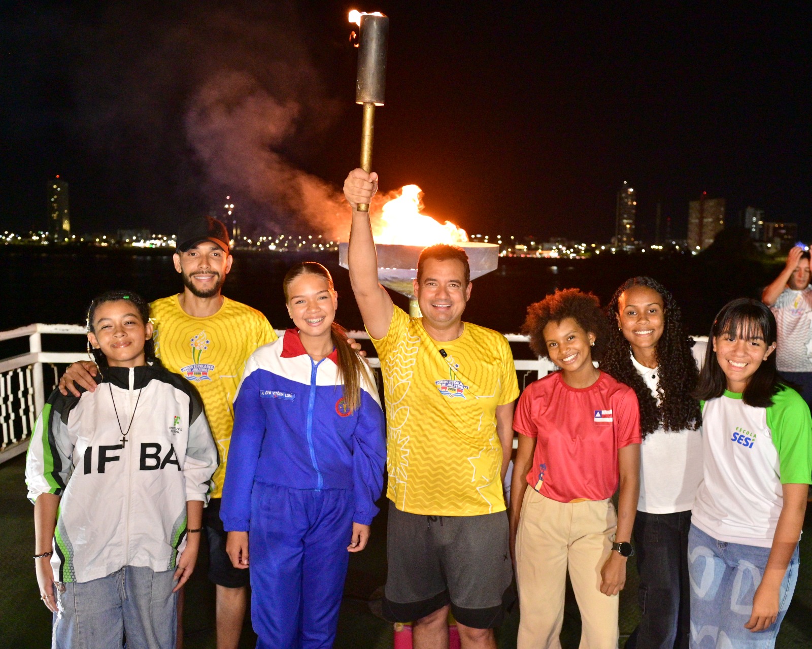 Com uma programação vibrante, a cerimônia contou com apresentações culturais, oficinas de lutas, arena de e-sports, brinquedos e um espetáculo que encantou o público, incluindo fogos pirotécnicos e o tradicional revezamento da tocha olímpica, protagonizado por alunos da rede municipal. O momento simbólico teve ainda a participação do prefeito Andrei Gonçalves e do jogador juazeirense Petros, reforçando o orgulho e a valorização dos talentos da terra.