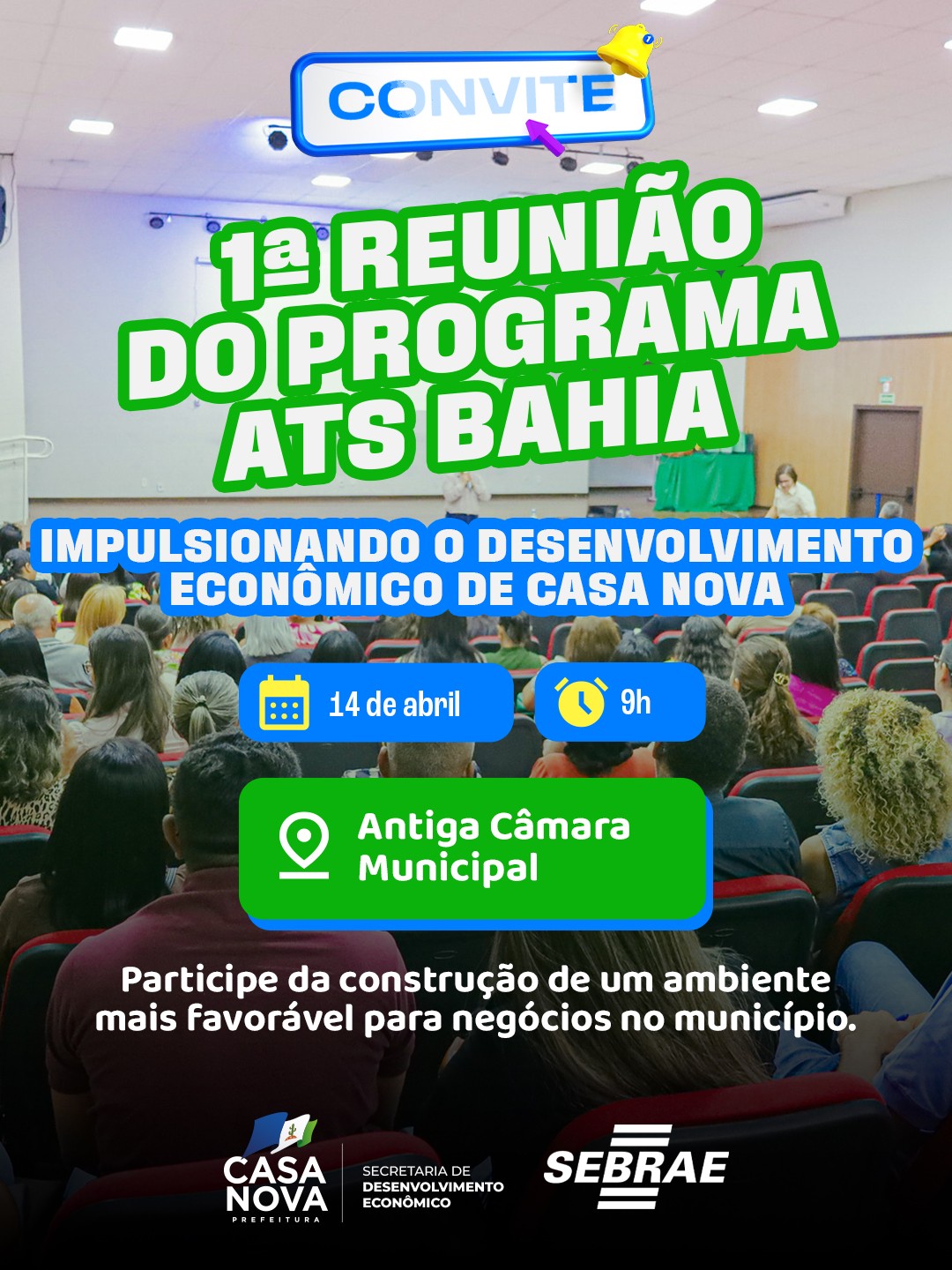 A Prefeitura de Casa Nova realiza, nesta terça-feira (14), às 9h, na antiga Câmara Municipal, a primeira reunião oficial para apresentação do Programa Agente Territorial SEBRAE Bahia (ATS BA), iniciativa do Sebrae que vai apoiar o município na melhoria do ambiente de negócios e no fortalecimento da economia local. A proposta é ajudar a gestão pública a organizar informações, identificar prioridades e colocar em prática ações mais eficientes para quem empreende ou deseja empreender na cidade.