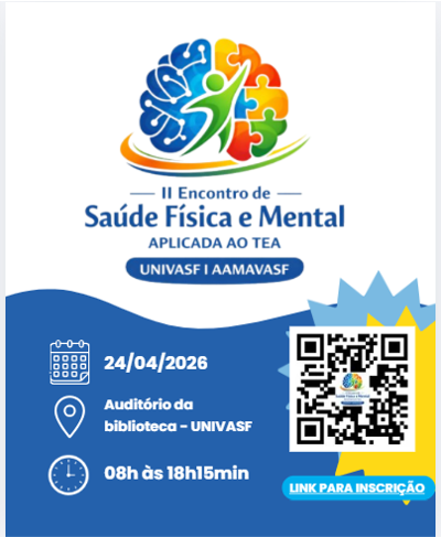 Com o tema “Autonomia se constrói com apoio”, a Universidade Federal do Vale do São Francisco (Univasf) realizará, no dia 24 de abril, o II Encontro de Saúde Física e Mental aplicada ao Transtorno do Espectro Autista (TEA). O evento acontecerá no auditório da Biblioteca do Campus Sede, em Petrolina (PE), com programação nos turnos da manhã e da tarde. O encontro tem como objetivo ampliar a conscientização sobre o TEA e incentivar práticas inclusivas, reunindo estudantes, profissionais, familiares e a comunidade em geral.