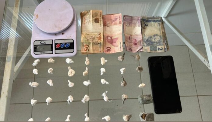 Segundo a corporação, os policiais entraram no imóvel e conseguiram alcançar o homem. Durante a busca no interior da casa, foi encontrada uma bolsa contendo outros 28 pacotes de substância semelhante à cocaína, duas porções de maconha, uma balança de precisão e R$ 359 em dinheiro.
