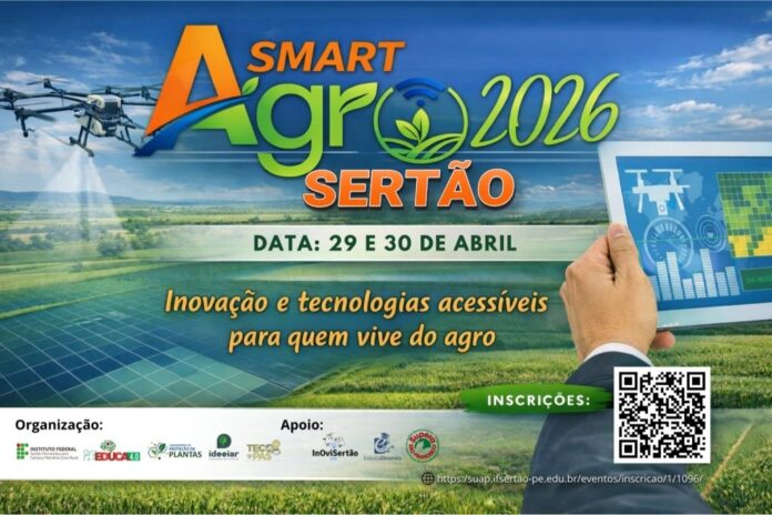 O campus Petrolina Zona Rural do IFSertãoPE realiza, nos dias 29 e 30 de abril, o Smart Agro Sertão 2026. O evento, que apresenta o tema “Inovação e tecnologias acessíveis para quem vive o agro”, tem como objetivo popularizar e democratizar o uso de tecnologias no setor agropecuário, por meio da difusão de soluções inovadoras, práticas e acessíveis aplicadas à agricultura e à pecuária no contexto do Semiárido.