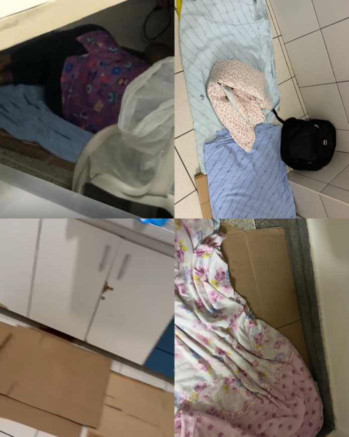 “A gente tira o repouso noturno onde dá, no chão, na cozinha e até embaixo da mesa de computador. A gente deita no chão, em papelão, porque não tem lugar adequado. É desumano””, relatou.