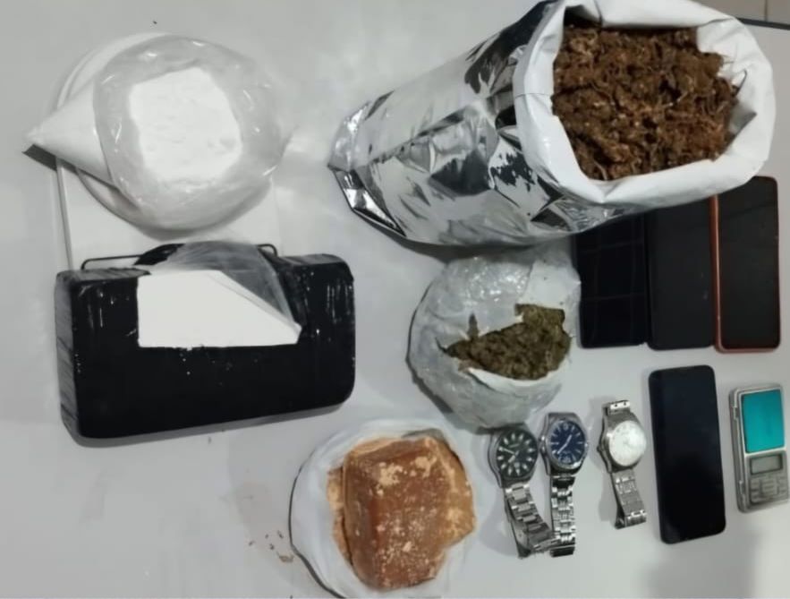 Durante a ação, os policiais apreenderam aproximadamente 1,240 kg de cocaína, 510 gramas de crack e 1,150 kg de maconha.