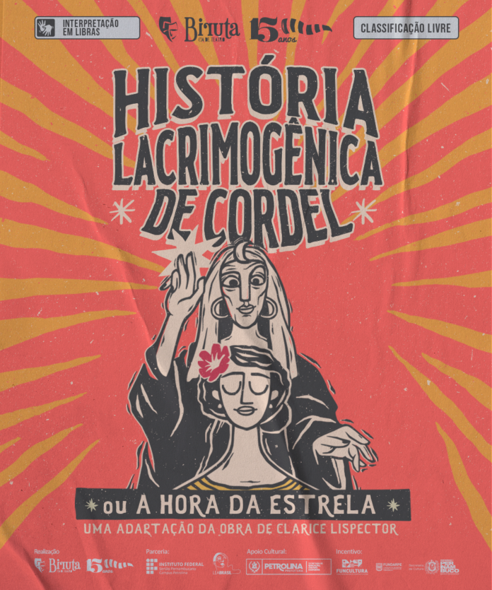 A Cia Biruta de Teatro vai levar para as ruas da sede e zona rural de Petrolina, Sertão de Pernambuco, o espetáculo “História Lacrimogênica de Cordel (ou A Hora da Estrela)”. Com seis apresentações gratuitas, distribuídas entre os dias 30 de novembro e 10 de dezembro, às 19h, nos bairros Rio Corrente e João de Deus, e nos projetos irrigados N-11 e C1, a peça é uma adaptação da obra de Clarice Lispector e narra a história tragicômica de Macabéa, uma nordestina, do interior de Alagoas, que migrou para o Rio de Janeiro.