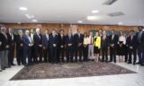 Nesta quarta-feira (11), o presidente da República Luiz Inácio Lula da Silva recebeu no Palácio do Planalto um grupo de parlamentares, o presidente da...