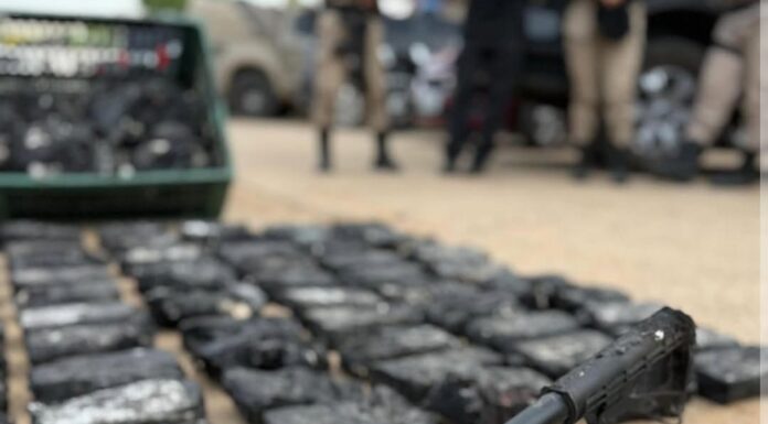 Durante a varredura, os PMs localizaram 110kg de cocaína e um fuzil, além de uma maquineta de cartão bancário,...