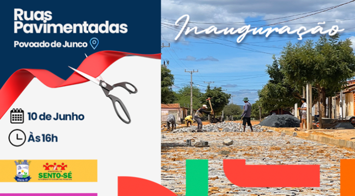 A Prefeitura de Sento-Sé, por meio da Secretaria de Obras e Serviços Públicos (Sosp), vai entregar a pavimentação da Avenida Alzira Barreto Cabral e da Rua Mariano Nunes da Silva, neste sábado (10), às 16h. As Ruas estão localizadas no povoado de Junco, distrito de Amaniú.
