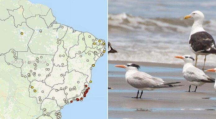 O caso foi registrado em uma ave silvestre da espécie trinta-réis-real localizada em uma praia da...