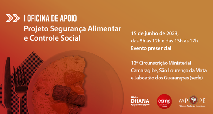 O Núcleo de Direito Humano à Alimentação e Nutrição Adequadas (Dhana), com apoio da Escola Superior do Ministério Público de Pernambuco (ESMP/PE), promove no próximo dia 15 de junho a 1ª Oficina de Apoio do “Projeto Segurança Alimentar e Controle Social”. A iniciativa será realizada na modalidade presencial, no auditório das Promotorias de Justiça de Jaboatão dos Guararapes, localizado...