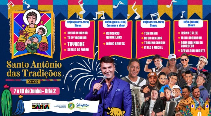 A Prefeitura de Juazeiro, através da Secretaria de Cultura, Turismo e Esportes, anunciou nesta quinta-feira (1), a programação do Santo Antônio das Tradições, que será aberto na próxima quarta-feira (07) e segue até o sábado (10).