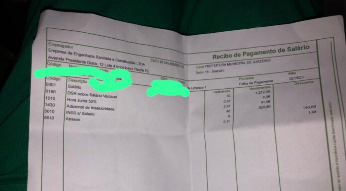 Profissionais que atuam no aterro sanitário do município de Juazeiro, no Norte da Bahia, estão recebendo salários abaixo do valor mínimo, que atualmente é de R$ 1.302. a denúncia foi feita ao Portal Preto no Branco pelo Sindicato dos Trabalhadores em Limpeza Pública (Sindilimp).