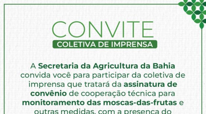 No próximo dia 25 de abril (terça-feira), a Secretaria da Agricultura, Pecuária, Irrigação, Pesca e Aquicultura da Bahia (Seagri), a Agência de Defesa Agropecuária da Bahia (Adab) e o Serviço Brasileiro de Apoio às Micro e Pequenas Empresas (Sebrae) assinam convênio com o objetivo de implantar um sistema de monitoramento e técnicas de controle de Moscas-das-Frutas.