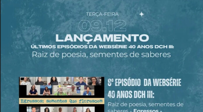 O Departamento de Ciências Humanas (DCH III) da Universidade do Estado da Bahia (UNEB), em Juazeiro, realizará, no próximo dia 9 de dezembro, o lançamento dos dois episódios finais da websérie comemorativa “Raiz de Poesia, Sementes de Saberes”, criada em celebração aos 40 anos do departamento. A exibição acontece às 16h30, no Auditório Paulo Freire.