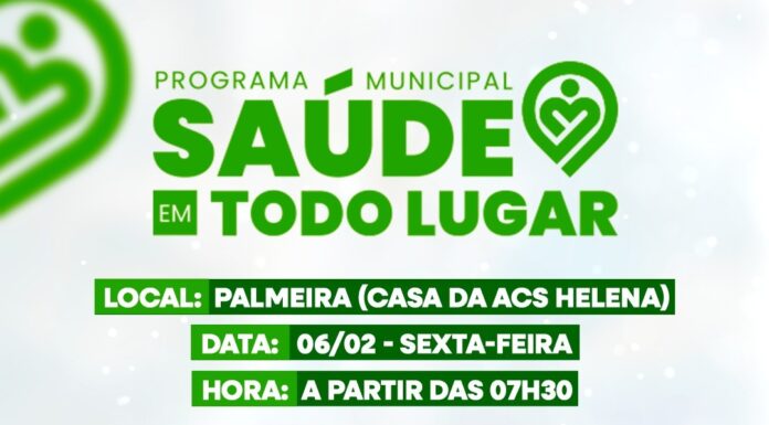 A Prefeitura de Casa Nova, por meio da Secretaria Municipal de Saúde, realiza no dia 06 de fevereiro a primeira edição do ano do Programa Saúde em Todo Lugar, que desta vez contemplará a comunidade de Palmeira, no interior do município. A ação acontece a partir das 7h30, na casa da ACS Helena, com atendimento por demanda espontânea.